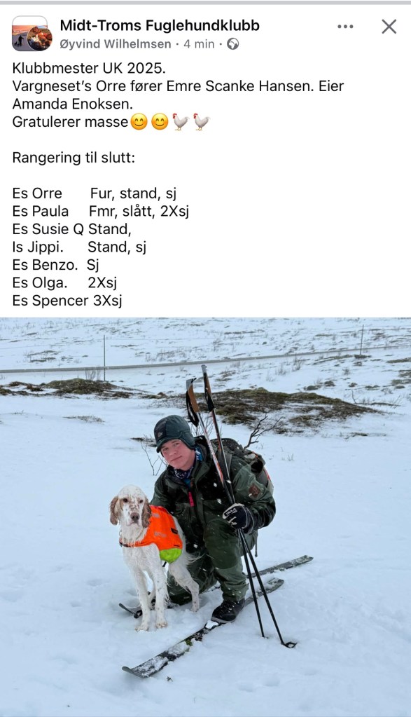 Gratulerer til Amanda Enoksen og Vargneset’s Orre som klubbmester i MTFK i unghundklassen👏🏻👏🏻 Da er de i rute til jaktprøvene starter💪🏻 Fører for dagen var Emre