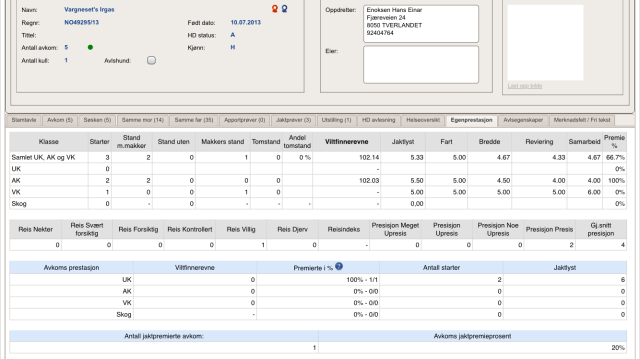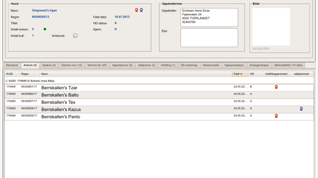 Det er 5 av 15 hunder fra Kennel Vargneset som er brukt i avl så langt. Avkommene er enda unge, men resultatene har ikke uteblitt av den grunn. I 4 av kullene er der flere hunder har som har stilt på utstilling og jaktprøver. HD statusen ser også meget lovende ut. (Trykk på bildene for full størrelse)